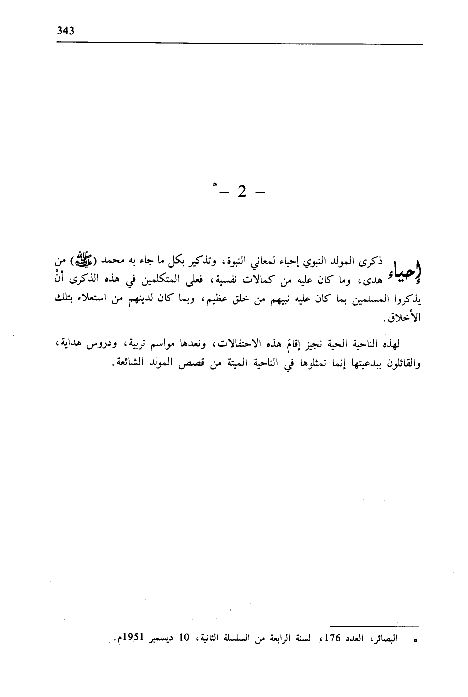 لهذه الناحية الحية نجيز إقامَ هذه الاحتفالات، ونعدها مواسم تربية، ودروس هداية، والقائلون ببدعيتها إنما تمثلوها في الناحية الميتة من قصص المولد الشائعة.