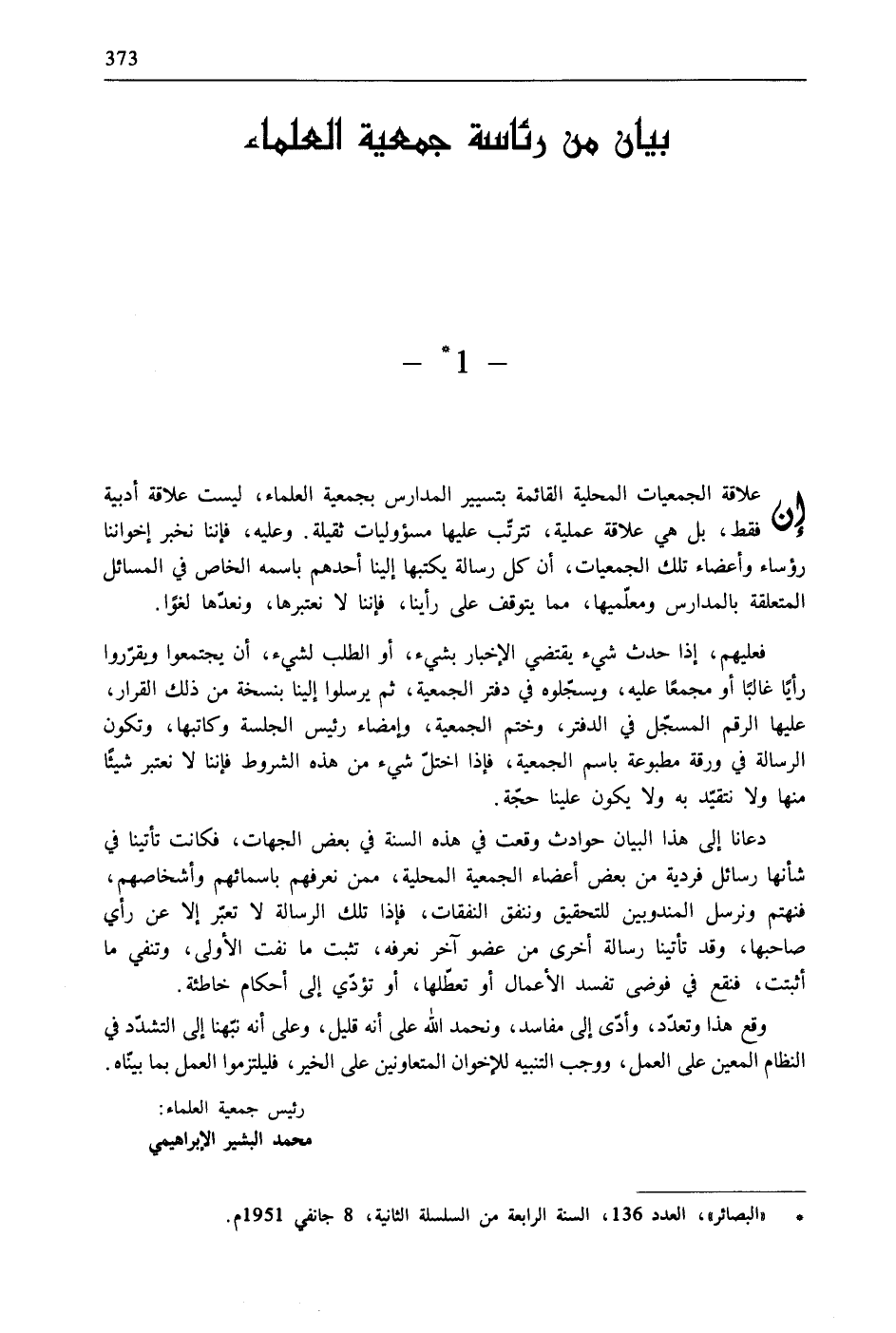 * "البصائر"، العدد 136، السنة الرابعة من السلسلة الثانية، 8 جانفي 1951م.