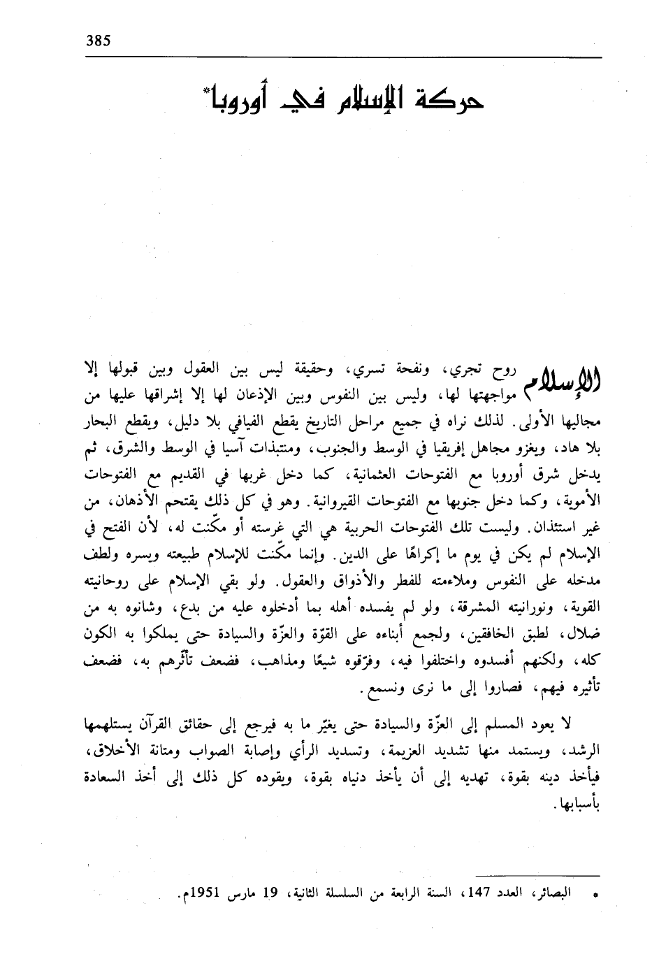 * "البصائر"، العدد 147، السنة الرابعة من السلسلة الثانية، 19 مارس 1951م.