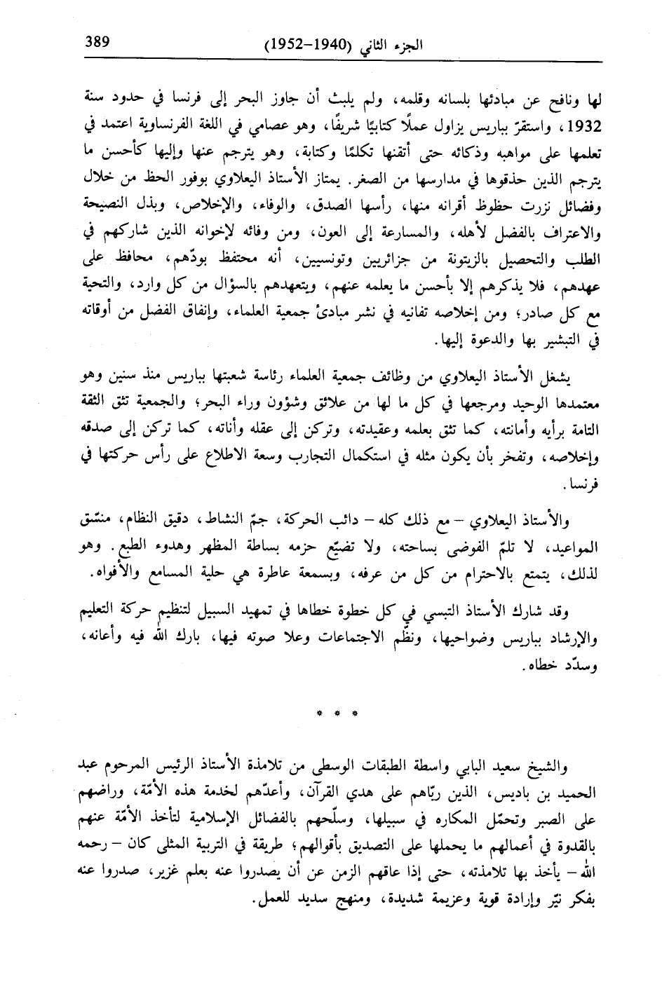 يشغل الأستاذ اليعلاوي من وظائف جمعية العلماء رئاسة شعبتها بباريس منذ سنين وهو معتمدها الوحيد ومرجعها في كل ما لها من علائق وشؤون وراء البحر، والجمعية تثق الثقة التامة برأيه وأمانته، كما تثق بعلمه وعقيدته، وتركن إلى عقله وأناته، كما تركن إلى صدقه وإخلاصه، وتفخر بأن يكون مثله في استكمال التجارب وسعة الاطلاع على رأس حركتها في فرنسا.