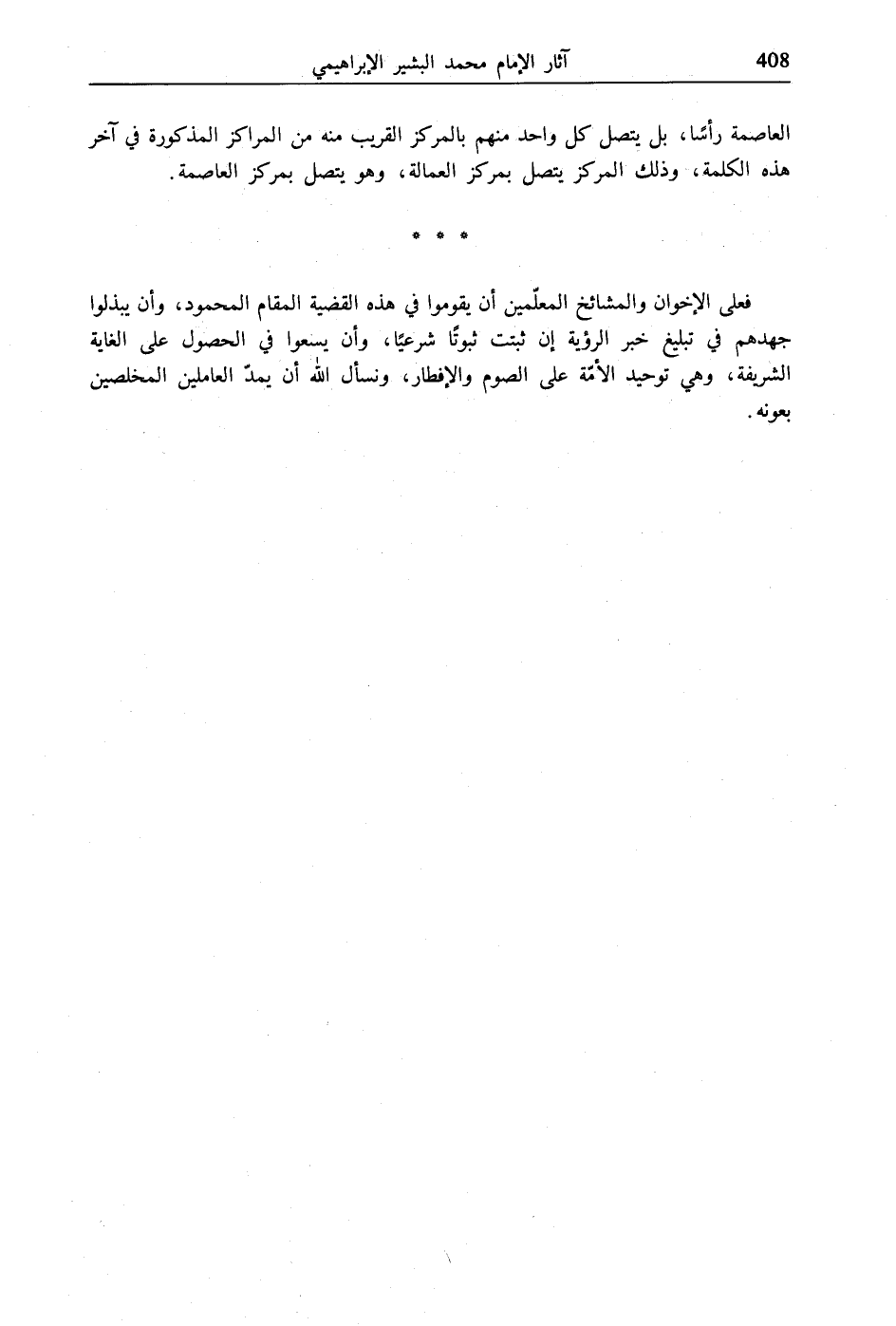 فعلى الإخوان والمشائخ المعلّمين أن يقوموا في هذه القضية المقام المحمود، وأن يبذلوا جهدهم في تبليغ خبر الرؤية إن ثبتت ثبوتًا شرعيًا، وأن يسعوا في الحصول على الغاية الشريفة، وهي توحيد الأمّة على الصوم والإفطار، ونسأل الله أن يمدّ العاملين المخلصين بعونه.