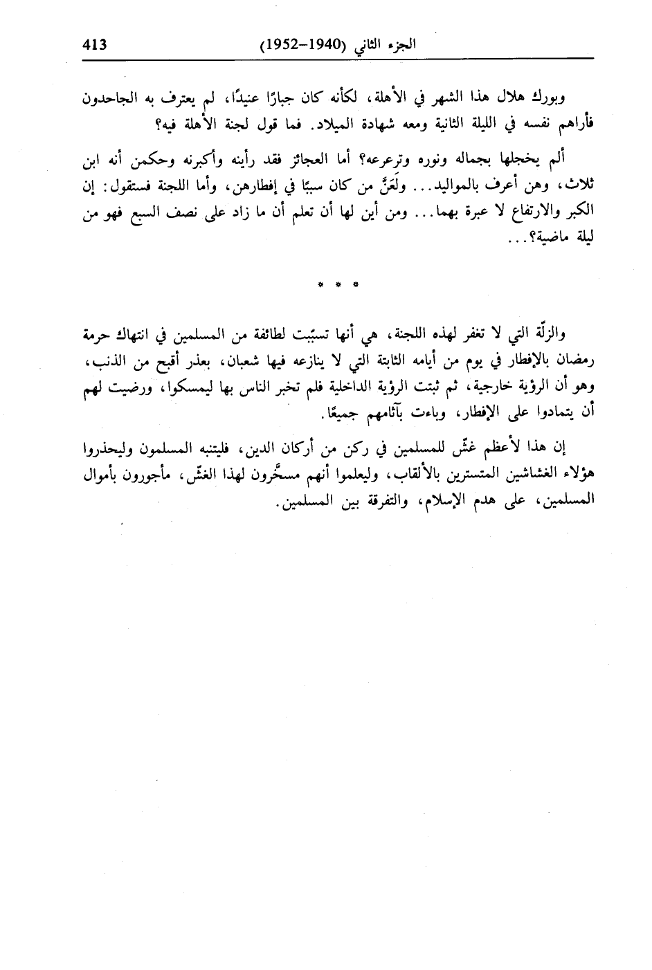 وبورك هلال هذا الشهر في الأهلة، لكأنه كان جبارًا عنيدًا، لم يعترف به الجاحدون فأراهم نفسه في الليلة الثانية ومعه شهادة الميلاد. فما قول لجنة الأهلة فيه؟