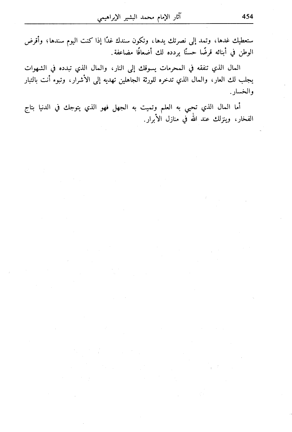 أما المال الذي تحي به العلم وتميت به الجهل فهو الذي يتوجك في الدنيا بتاج الفخار، وينزلك عند الله في منازل الأبرار.
