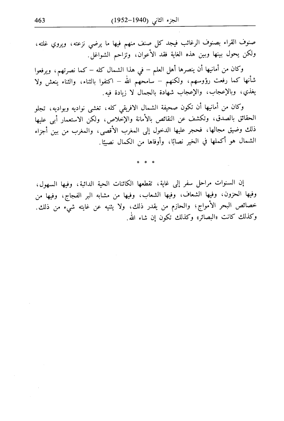 إن السنوات مراحل سفر إلى غاية، تقطعها الكائنات الحية الدائبة، وفيها السهول، وفيها الحزون، وفيها الشعاف، وفيها الشعاب، وفيها من مشابه البر الفجاج، وفيها من خصائص البحر الأمواج؛ والحازم من يقدر ذلك، ولا يثنيه عن غايته شيء من ذلك. وكذلك كانت "البصائر" وكذلك تكون إن شاء الله.