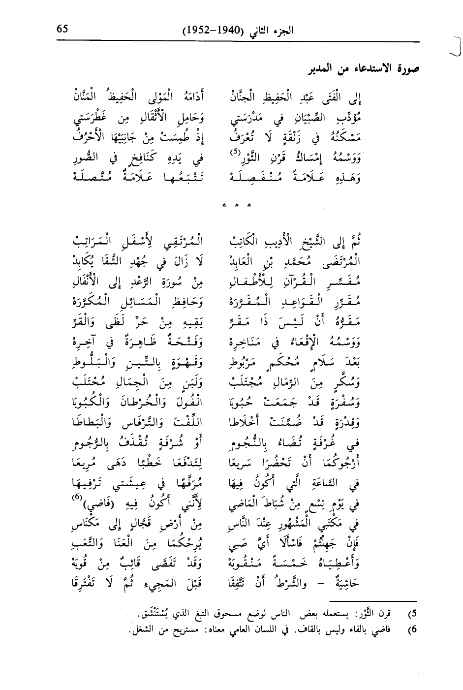 إِلَى الْفَتَى عَبْدِ الْحَفِيظِ الْجَنَّانْ … أَدَامَهُ الْمَوْلَى الْحَفِيظُ الْمَنَّانْ
