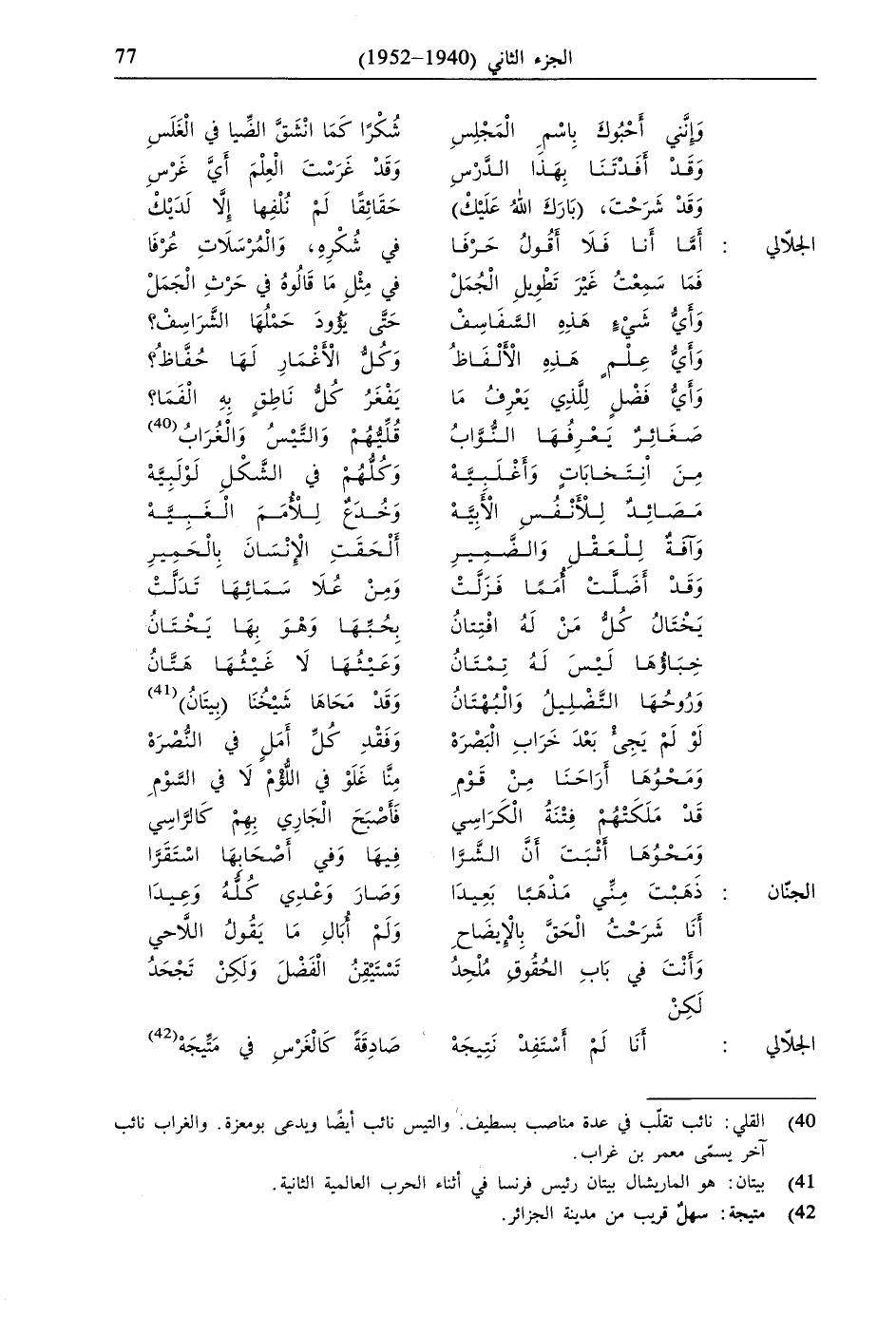 41) بيتان: هو الماريشال بيتان رئيس فرنسا في أثناء الحرب العالمية الثانية.