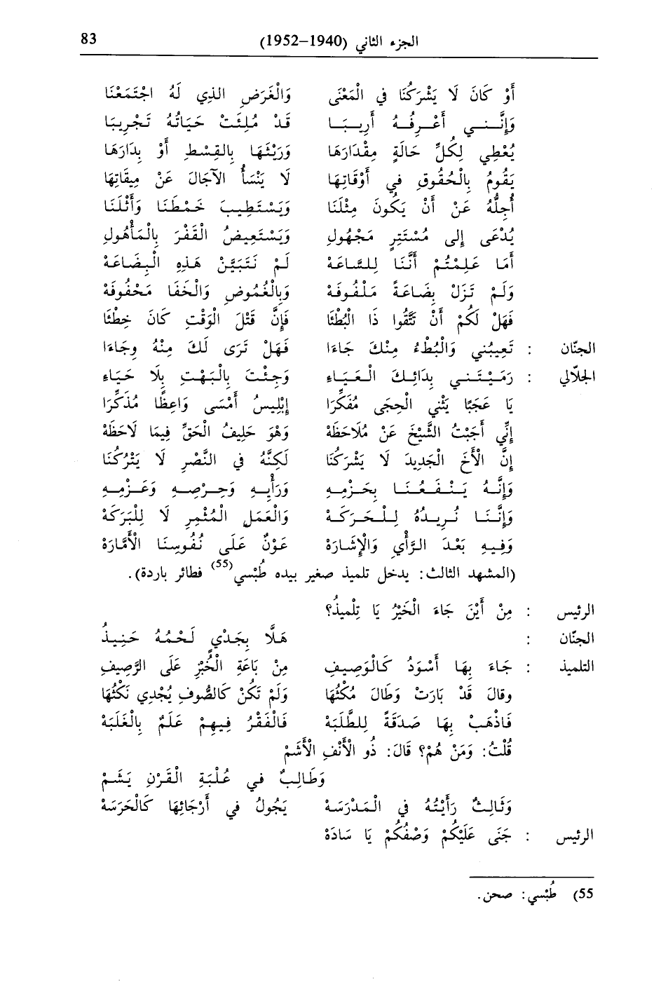 (الْمَشْهَدُ الثَّالِثُ: يَدْخُلُ تِلْمِيذٌ صَغِيرٌ بِيَدِهِ طُبْسِي (55) فَطَائِرٌ بَارِدَةٌ).
