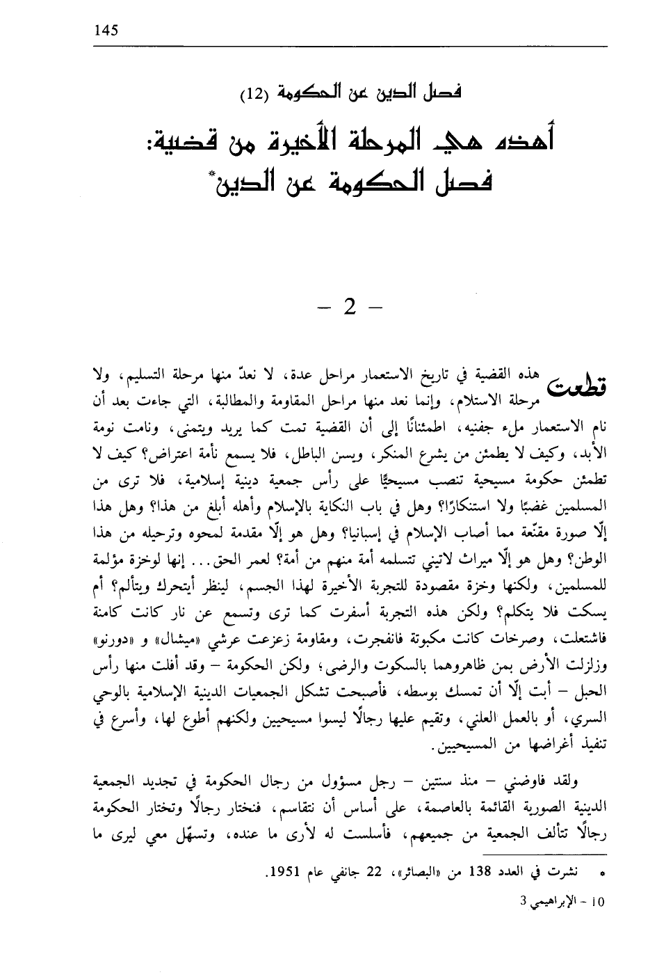 * نشرت في العدد 138 من «البصائر»، 22 جانفي عام 1951.