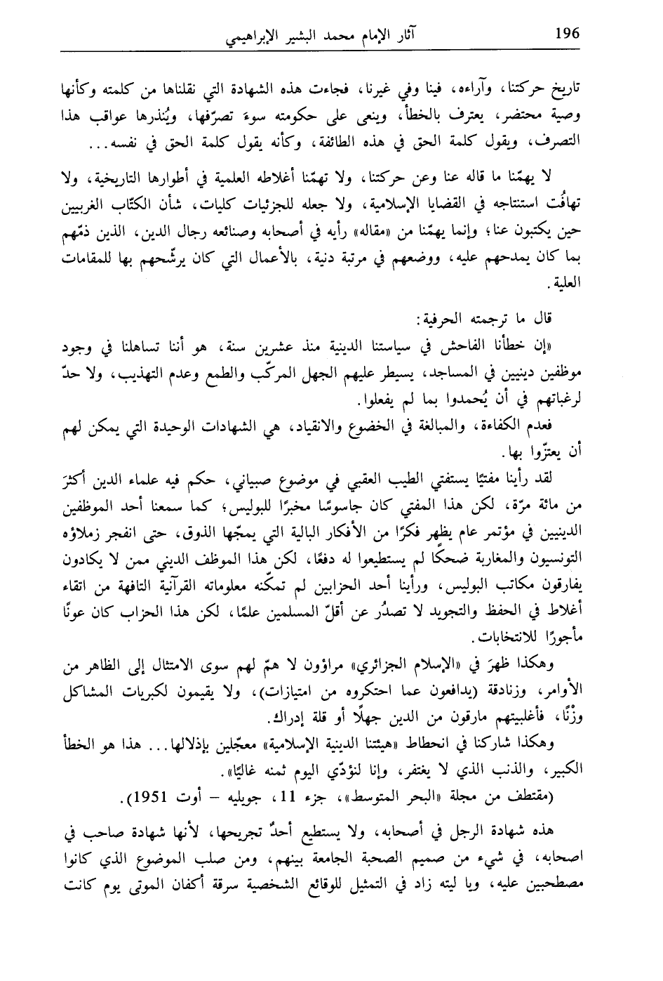 وهكذا شاركنا في انحطاط "هيئتنا الدينية الإسلامية" معجّلين بإذلالها ... هذا هو الخطأ الكبير، والذنب الذي لا يغتفر، وإنا لنؤدّي اليوم ثمنه غاليًا".