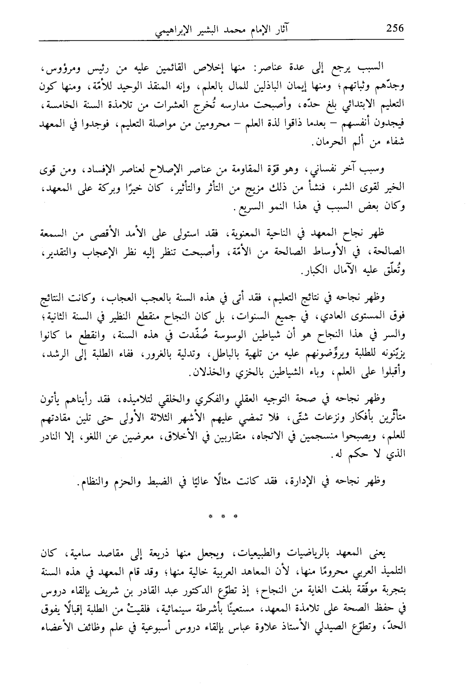 وسبب آخر نفساني، وهو قوّة المقاومة من عناصر الإصلاح لعناصر الإفساد، ومن قوى الخير لقوى الشر، فنشأ من ذلك مزيج من التأثر والتأثير، كان خيرًا وبركة على المعهد، وكان بعض السبب في هذا النمو السريع.