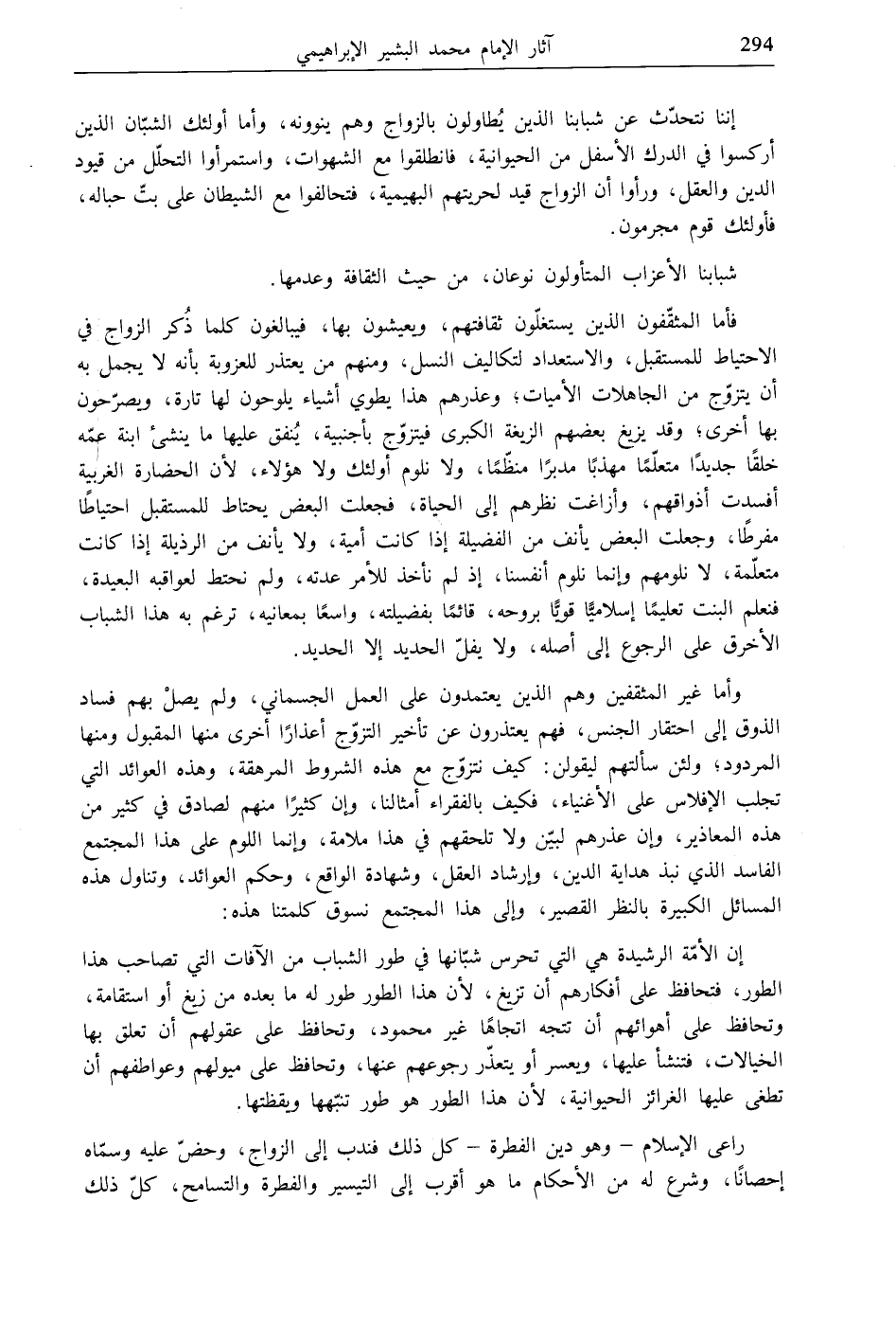 إن الأمّة الرشيدة هي التي تحرس شبّانها في طور الشباب من الآفات التي تصاحب هذا الطور، فتحافظ على أفكارهم أن تزيغ، لأن هذا الطور طور له ما بعده من زيغ أو استقامة، وتحافظ على أهوائهم أن تتجه اتجاهًا غير محمود، وتحافظ على عقولهم أن تعلق بها الخيالات، فتنشأ عليها، ويعسر أو يتعذّر رجوعهم عنها، وتحافظ على ميولهم وعواطفهم أن تطغى عليها الغرائز الحيوانية، لأن هذا الطور هو طور تنبّهها ويقظتها.
