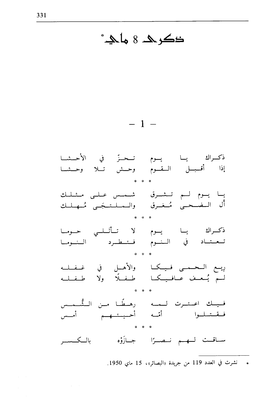 * نشرت في العدد 119 من جريدة «البصائر»، 15 ماي 1950.