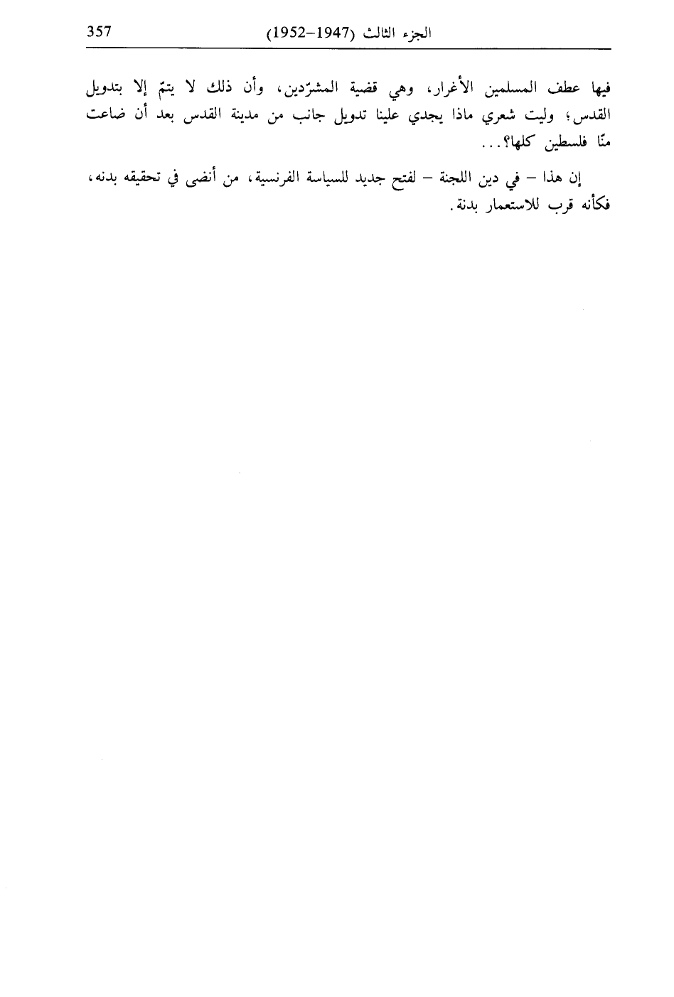 إن هذا- في دين اللجنة- لفتح جديد للسياسة الفرنسية، من أنضى في تحقيقه بدنه، فكأنه قرب للاستعمار بدنة.
