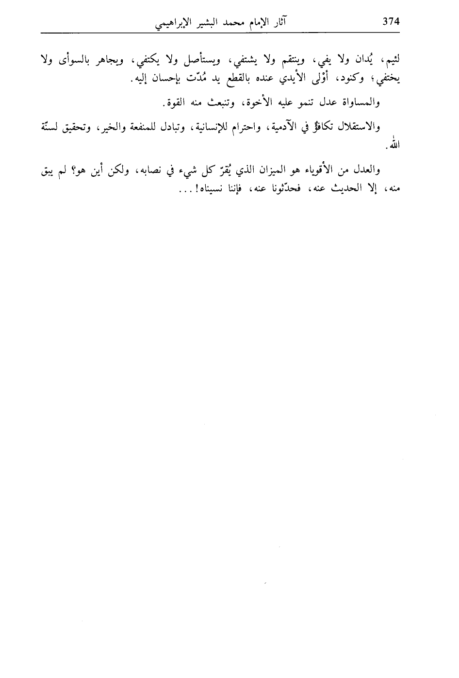 والعدل من الأقوياء هو الميزان الذي يُقرّ كل شيء في نصابه، ولكن أين هو؟ لم يبق إلا الحديث عنه، فحدّثونا عنه، فإننا نسيناه! ...