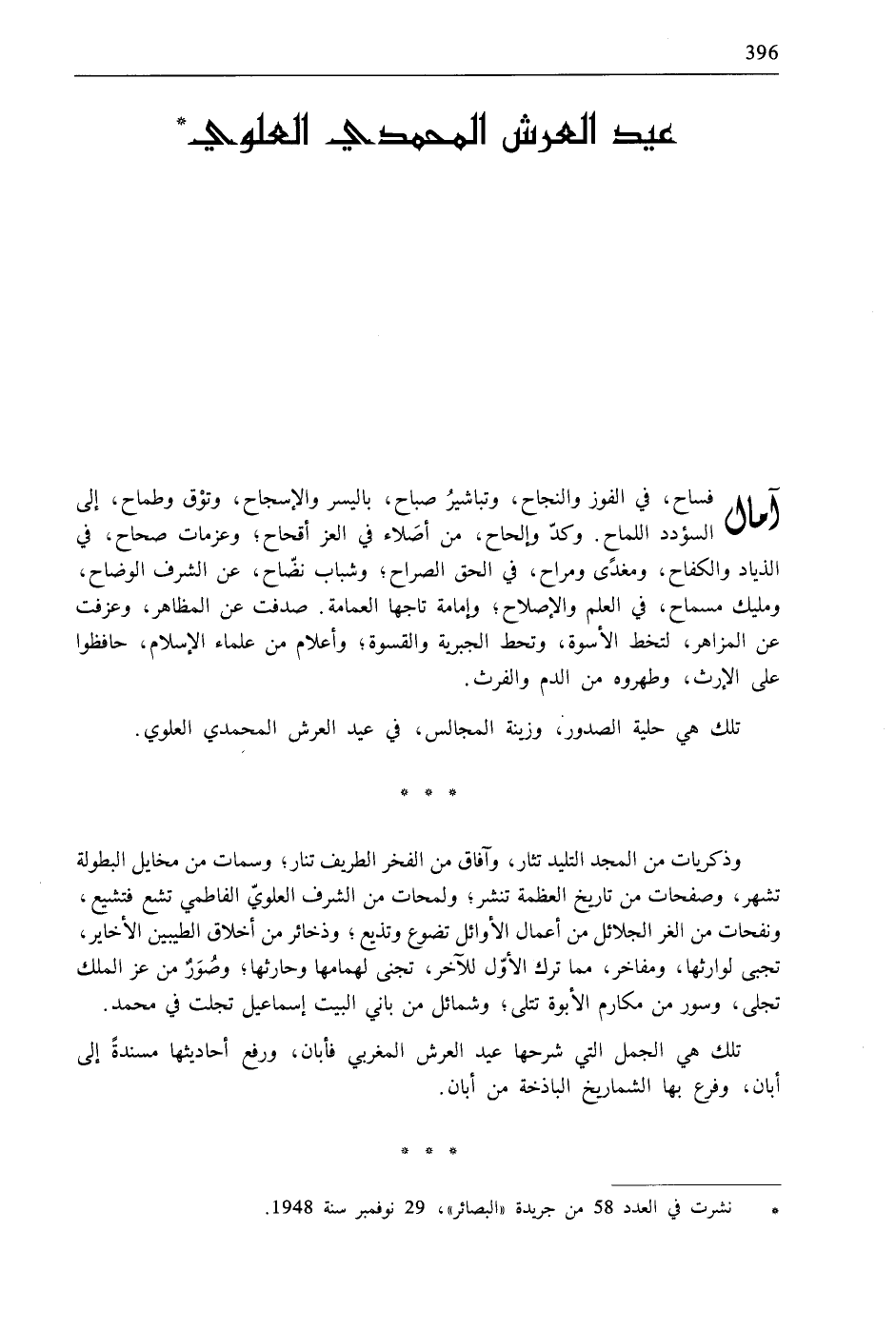 تلك هي الجمل التي شرحها عيد العرش المغربي فأبان، ورفع أحاديثها مسندةً إلى أبان، وفرع بها الشماريخ الباذخة من أبان.