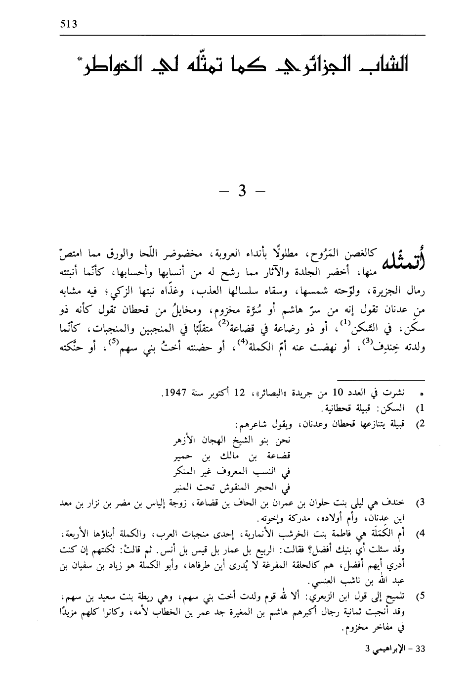* نشرت في العدد 10 من جريدة «البصائر»، 12 أكتوبر سنة 1947.