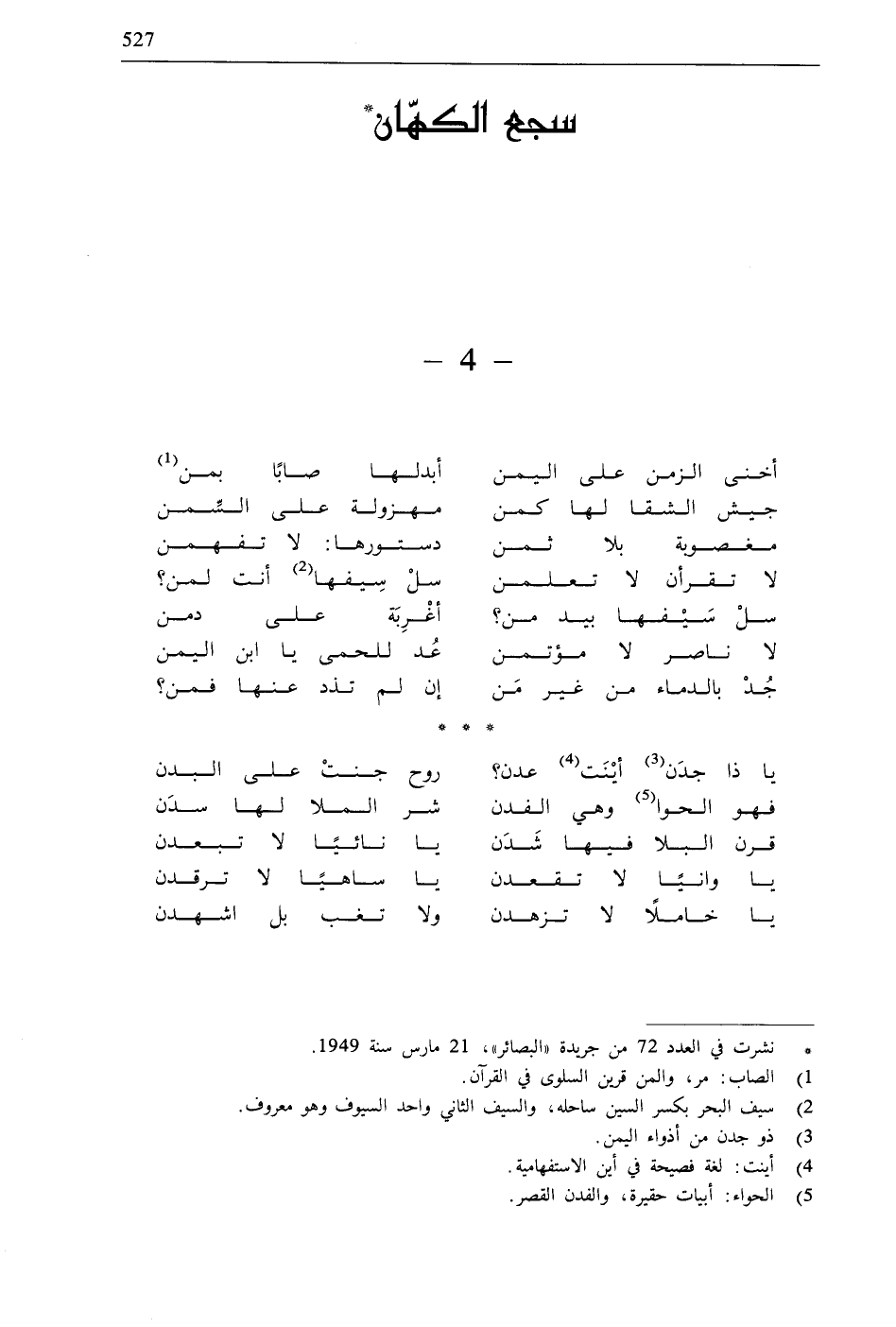 يا ذا جدَن (3) أيْنَت (4) عدن؟ … روح جنتْ على البدن
