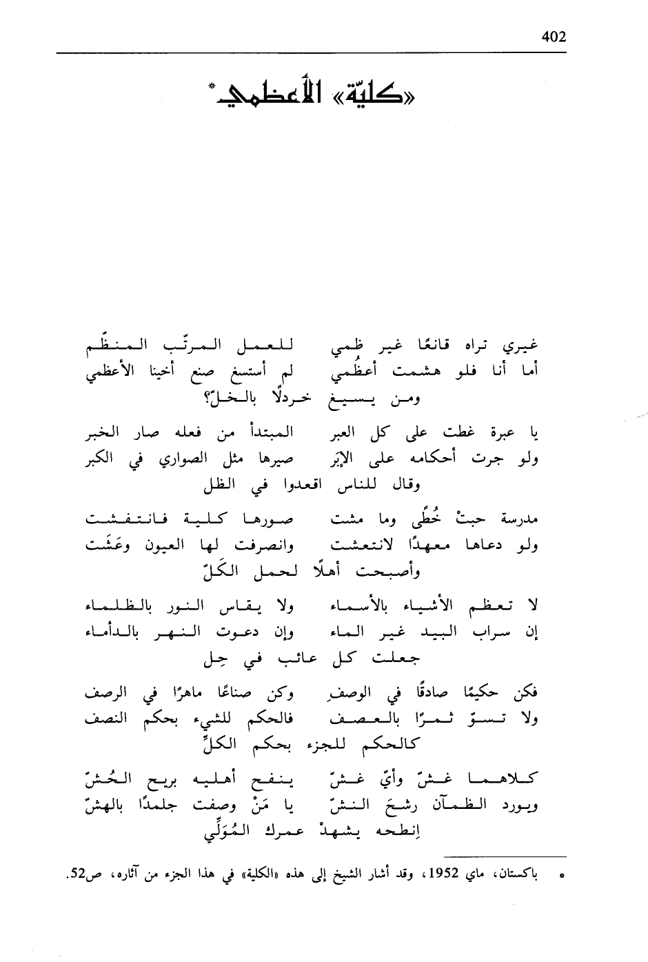 أما أنا فلو هشمت أعظُمي … لم أستسغ صنع أخينا الأعظمي