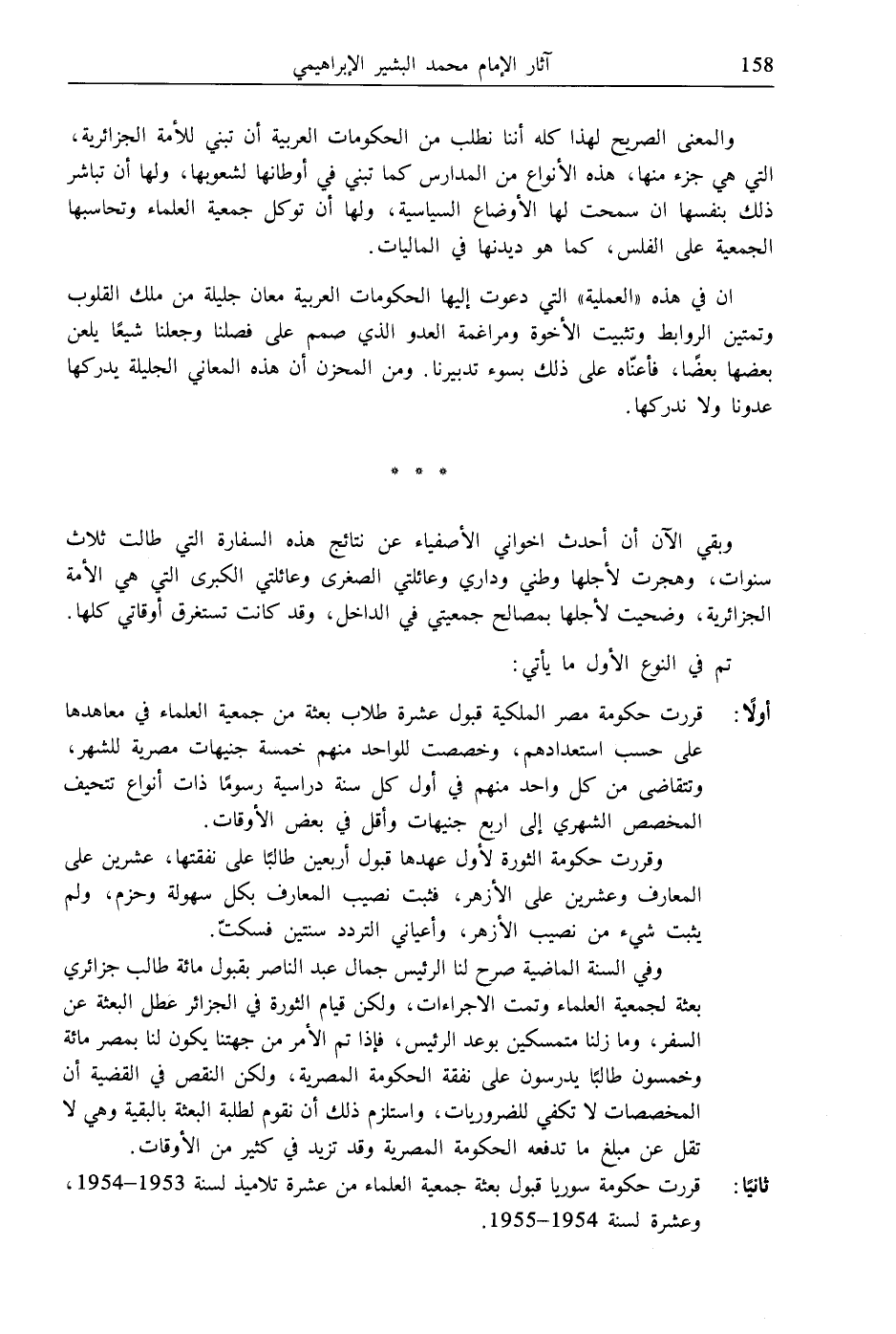 ثانيًا: قررت حكومة سوريا قبول بعثة جمعية العلماء من عشرة تلاميذ لسنة 1953 - 1954، وعشرة لسنة 1954 - 1955.