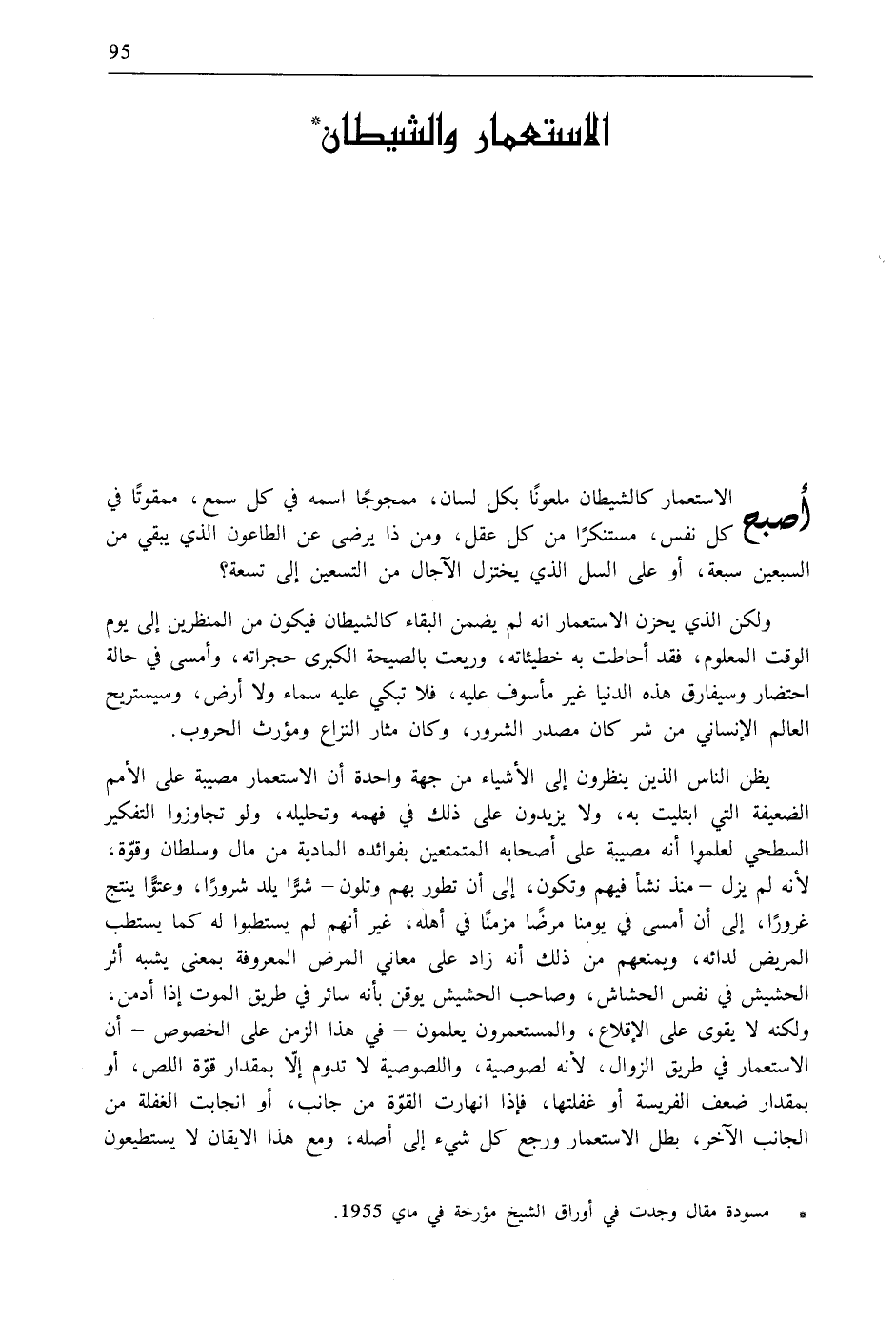 * مسودة مقال وجدت في أوراق الشيخ مؤرخة في ماي 1955.