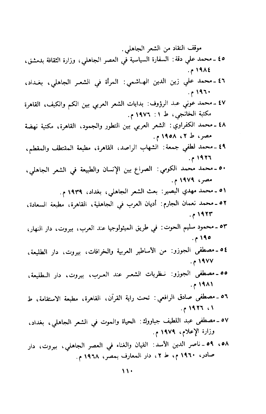51- محمد مهدي البصري: بعث الشعر الجاهلي، بغداد، 1939م.