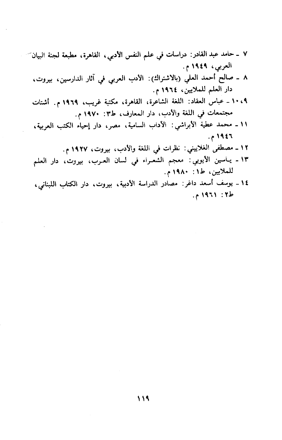 14- يوسف أسعد داغر: مصادر الدراسة الأدبية, بيروت، دار الكتاب اللبناني، ط2: 1961م.