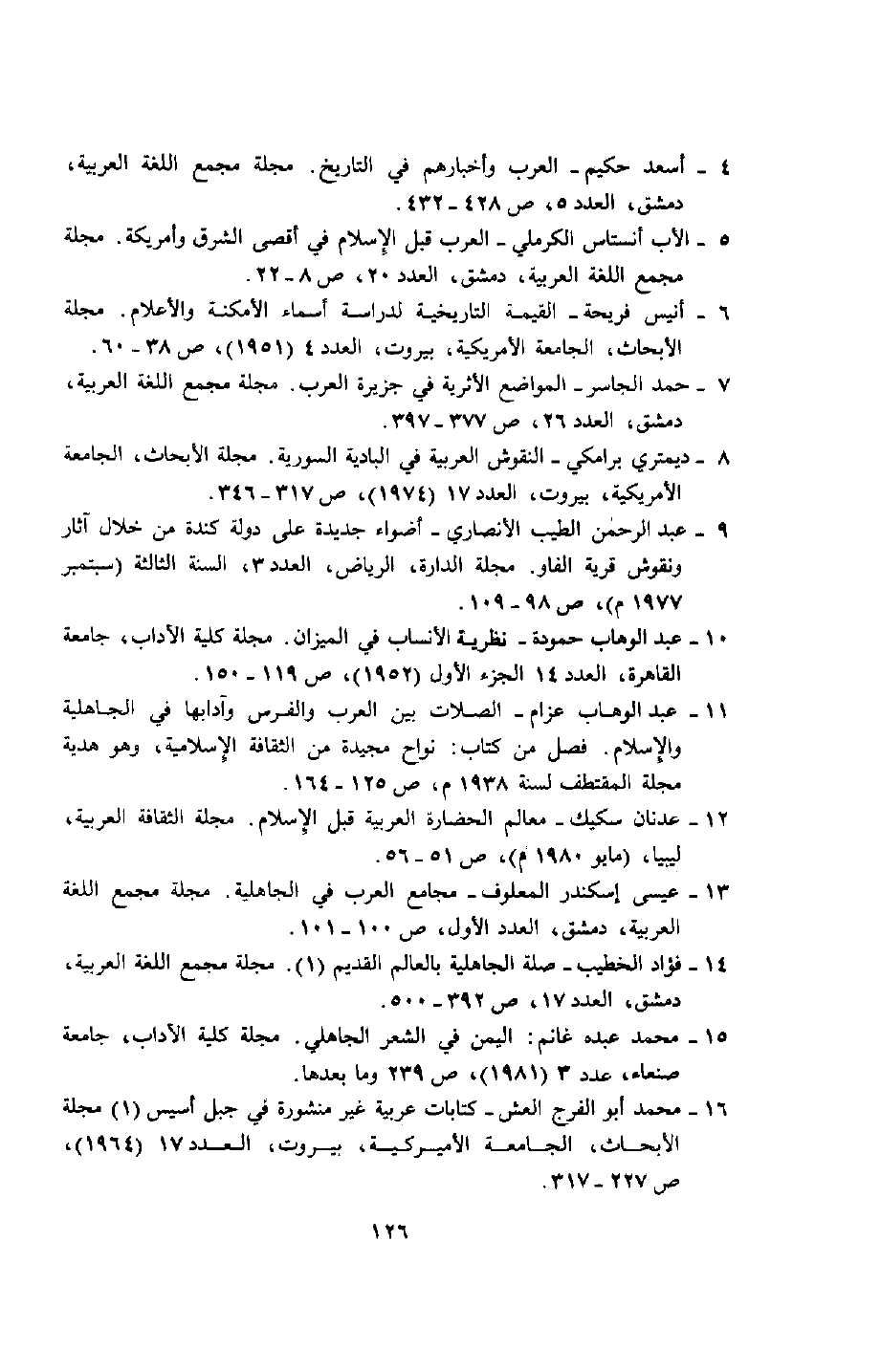 14- فؤاد الخطيب: صلة الجاهلية بالعالم القديم "1", مجلة مجمع اللغة العربية، دمشق، العدد 17، ص392-500.