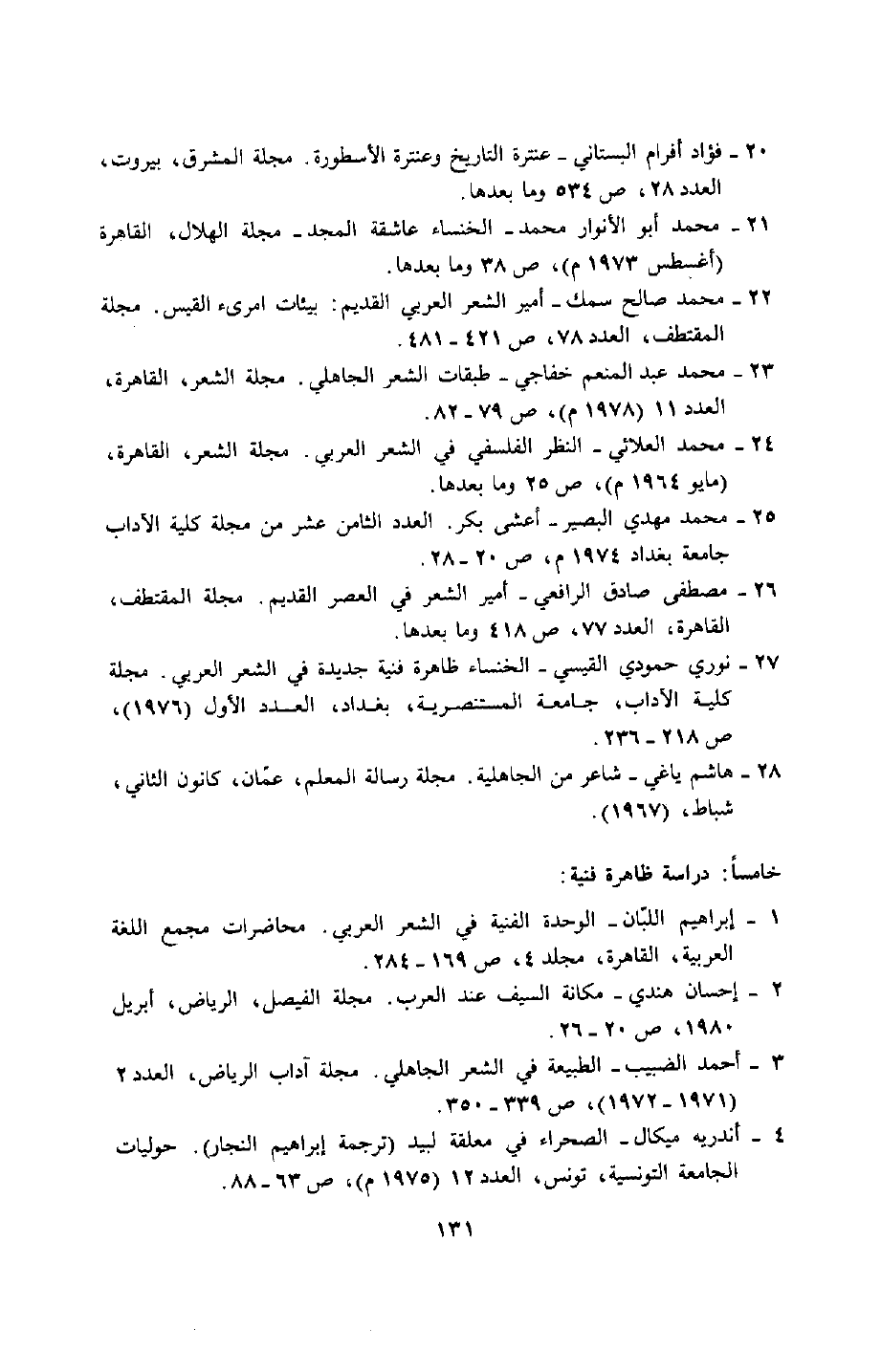 23- محمد عبد المنعم خفاجي: طبقات الشعر الجاهلي، مجلة الشعر، القاهرة، العدد 11 "1978م"، ص79-82.