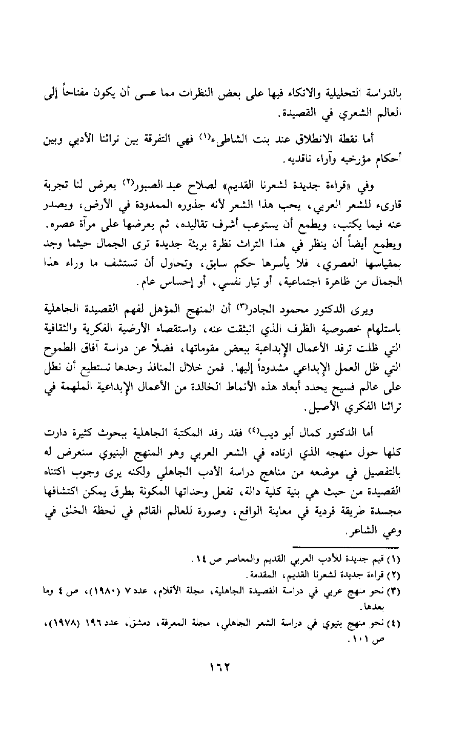 3 نحو منهج عربي في دراسة القصيدة الجاهلية، مجلة الأقلام، عدد 7 "1980"، ص4 وما بعدها.