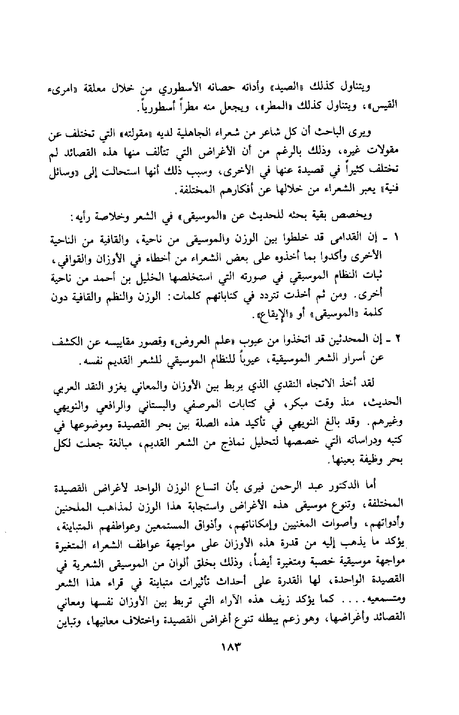 2- إن المحدثين قد اتخذوا من عيوب "علم العروض" وقصور مقاييسه عن الكشف عن أسرار الشعر الموسيقية، عيوبًا للنظام الموسيقي للشعر القديم نفسه.