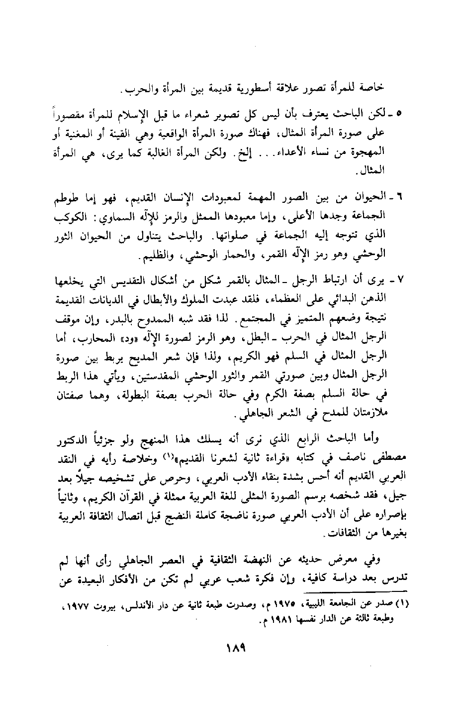 5- لكن الباحث يعترف بأن ليس كل تصوير شعراء ما قبل الإسلام للمرأة مقصورًا على صور المرأة المثال، فهناك صورة المرأة الواقعية, وهي القينة أو المغنية أو المهجوّة من نساء الأعداء ... إلخ, ولكن المرأة الغالبة -كما يرى- هي المرأة المثال.
