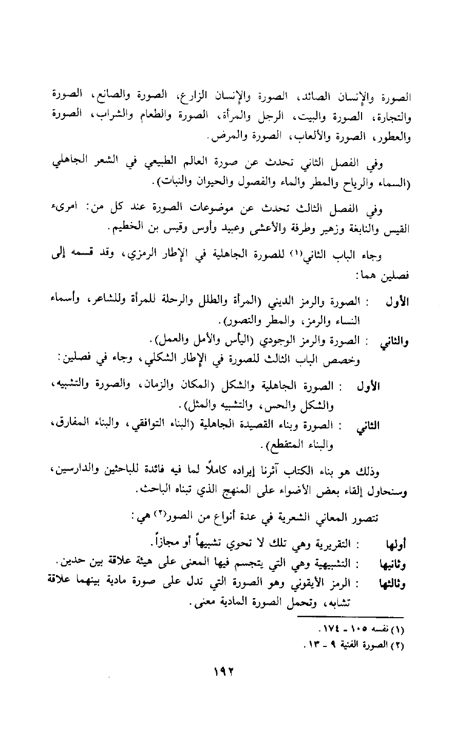 الأول: الصورة الجاهلية والشكل "المكان والزمان، والصورة والتشبيه، والشكل والحس، والتشبيه والمثل".