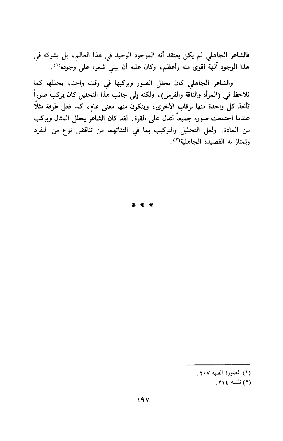 فالشاعر الجاهلي لم يكن يعتقد أنه الموجود الوحيد في هذا العالم، بل يشركه في هذا الوجود آلهة أقوى منه وأعظم، وكان عليه أن يبني شعره على وجوده1.