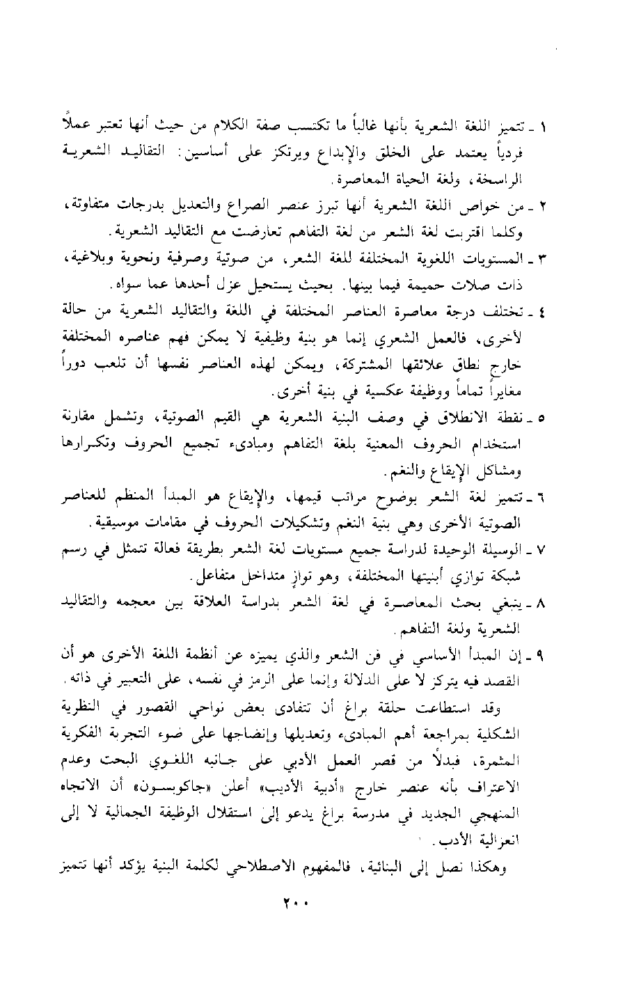 8- ينبغي بحث المعاصرة في لغة الشعر بدراسة العلاقة بين معجمه والتقاليد الشعرية ولغة التفاهم.