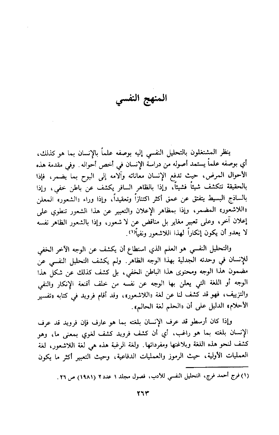 1 فرج أحمد فرج، التحليل النفسي للأدب، فصول مجلد 1, عدد2 "1981", ص26.