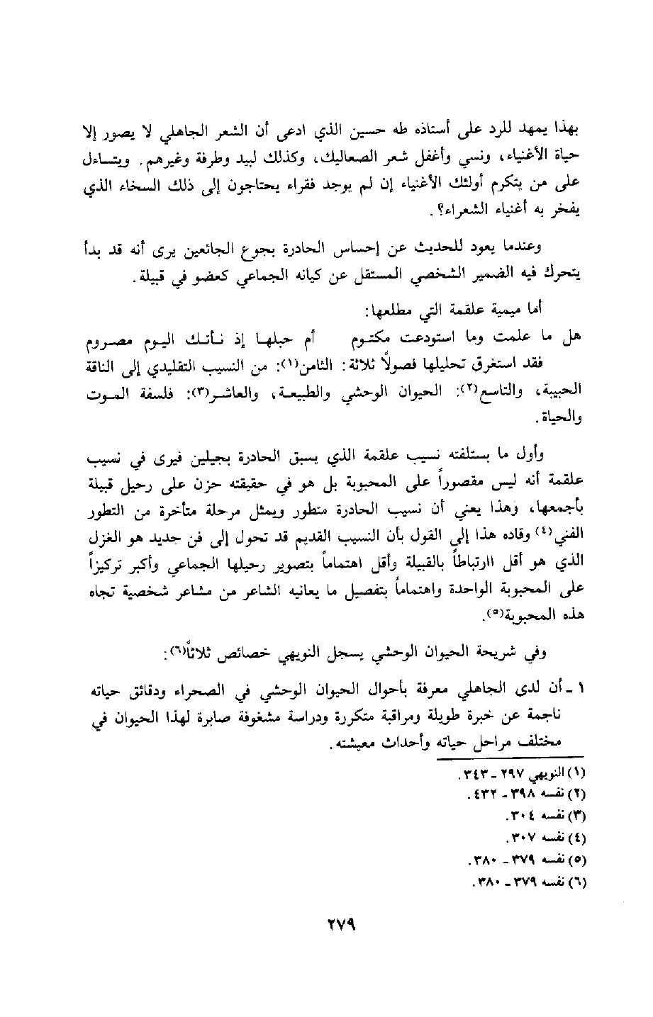 بهذا يمهد الرد على أستاذه طه حسين الذي ادعى أن الشعر الجاهلي لا يصور إلّا حياة الأغنياء، ونسي وأغفل شعر الصعاليك, وكذلك لبيد وطرفة وغيرهم. ويتساءل على من يتكرّم أولئك الأغنياء إن لم يوجد فقراء يحتاجون إلى ذلك السخاء الذي يفخر بها أغنياء الشعراء؟