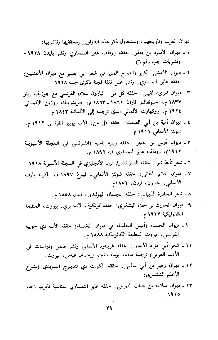 9- ديوان الحارث بن حلزة اليشكري: حققه كرنكوف الإنجليز، بيروت، المطبعة الكاثوليكية 1922م.