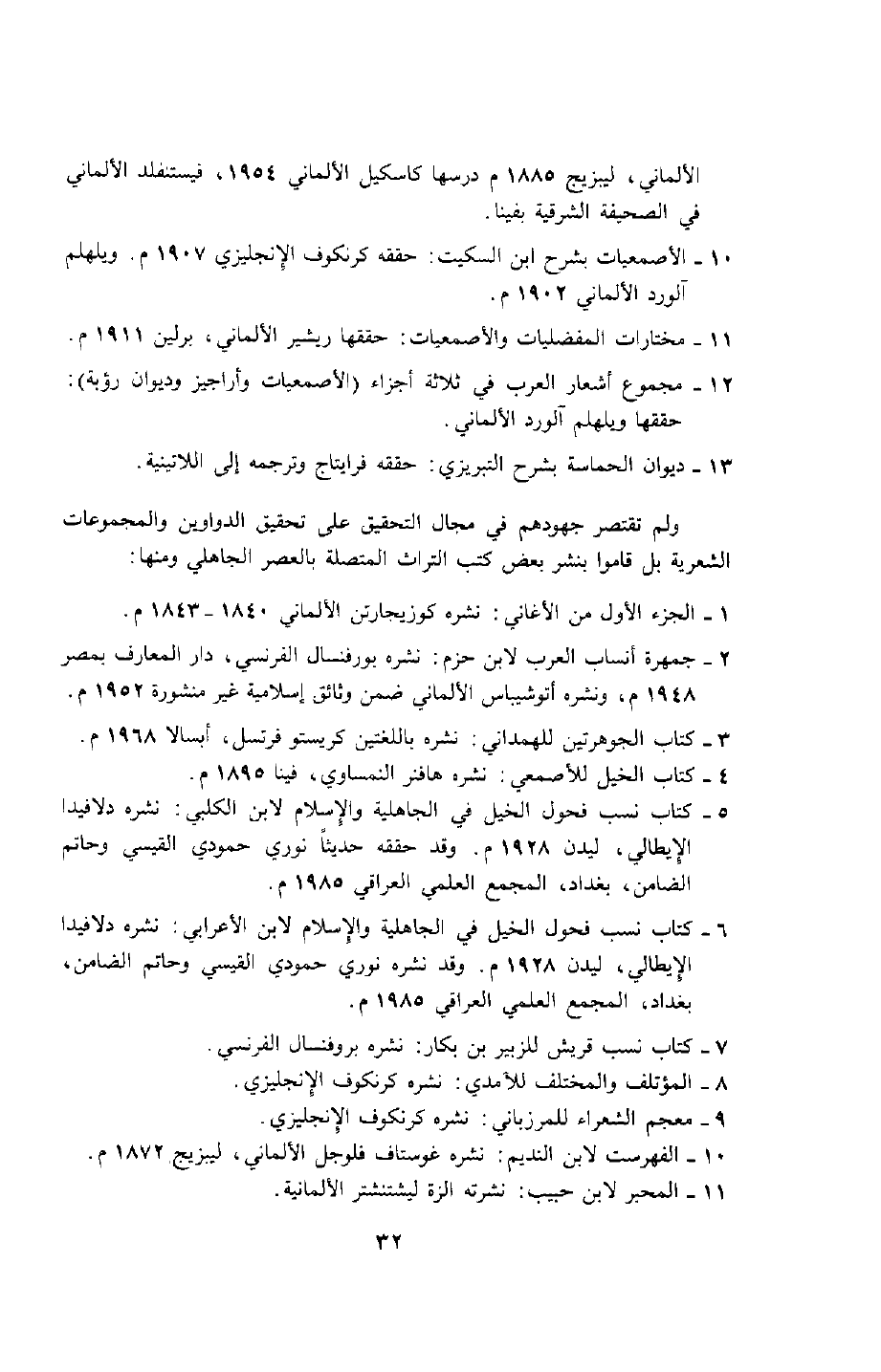 10- الأصمعيات بشرح ابن السكيت: حققه كرنكوف الإنجليزي 1907م، ويلهلم آلورد الألماني 1902م.