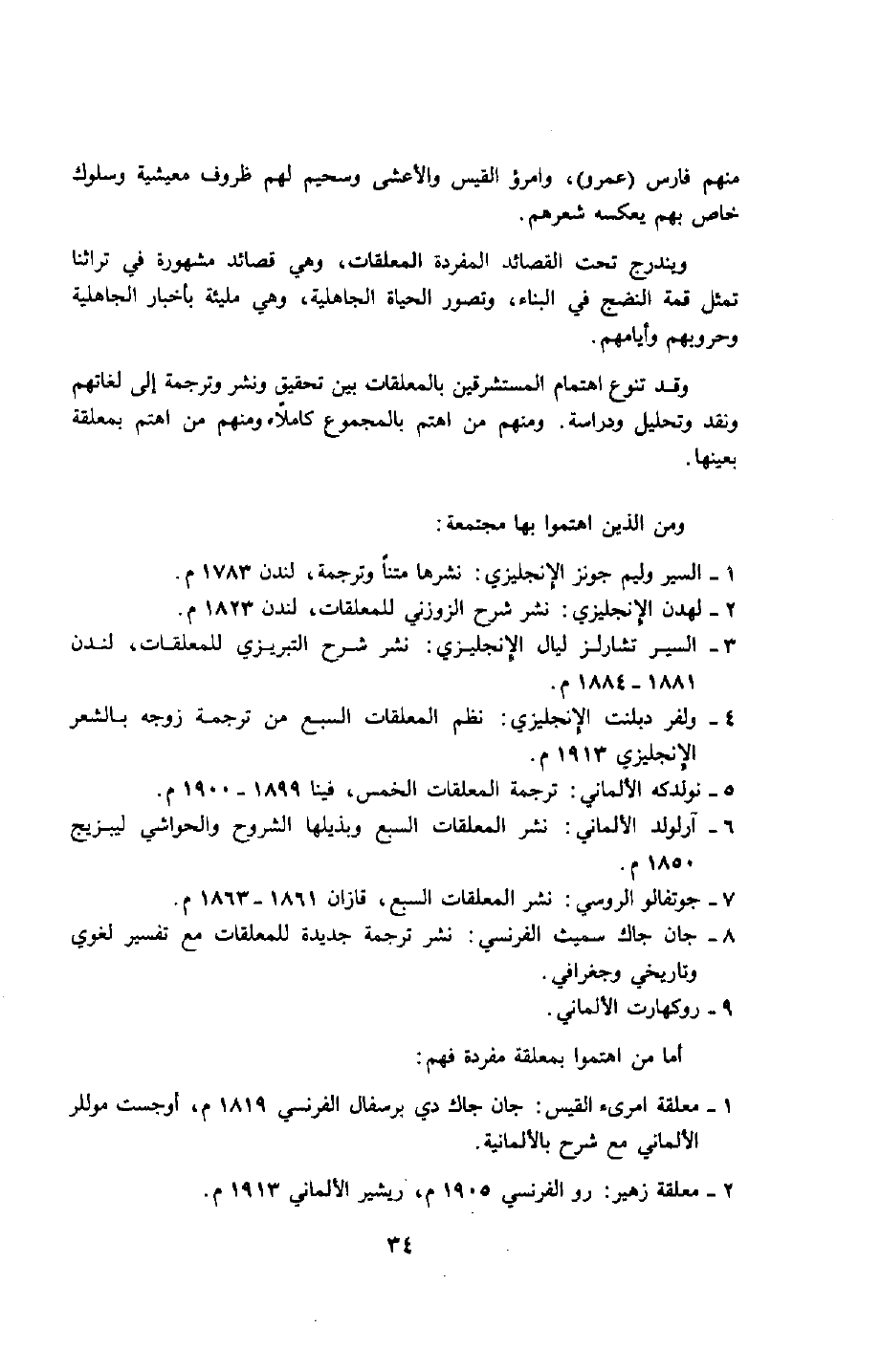 1- معلقة امرئ القيس: جان جاك دي برسفال الفرنسي 1819م، أوجست موللر الألماني مع شرح بالألمانية.