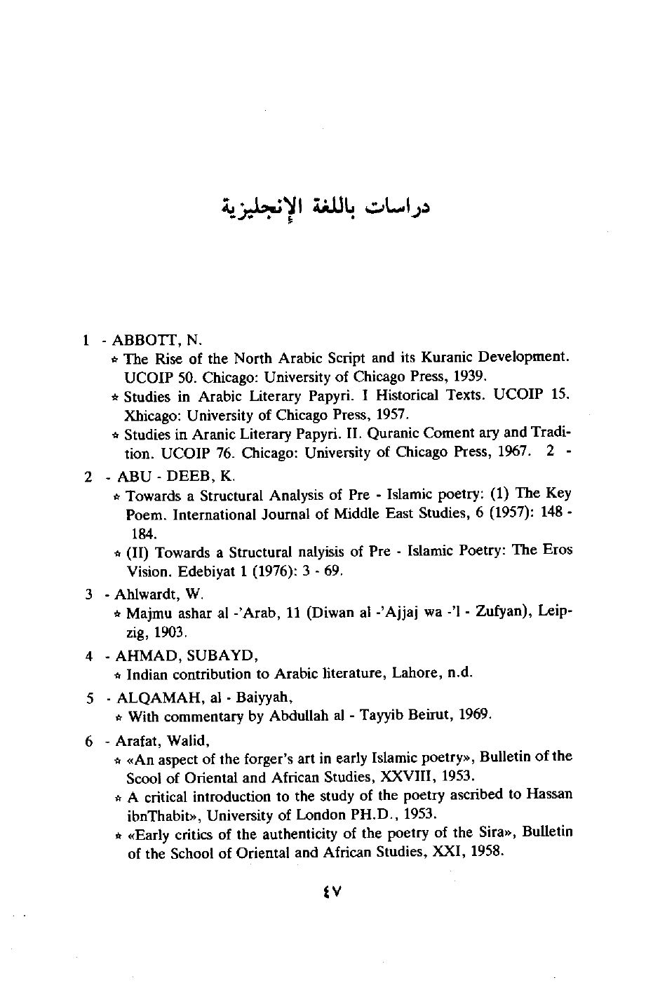 - Towards a Structural Analysis of Pre- Islamic poetry: (1) The Key Poem. International Journal of Middle East Studies, 6 (1957) : 148-184.