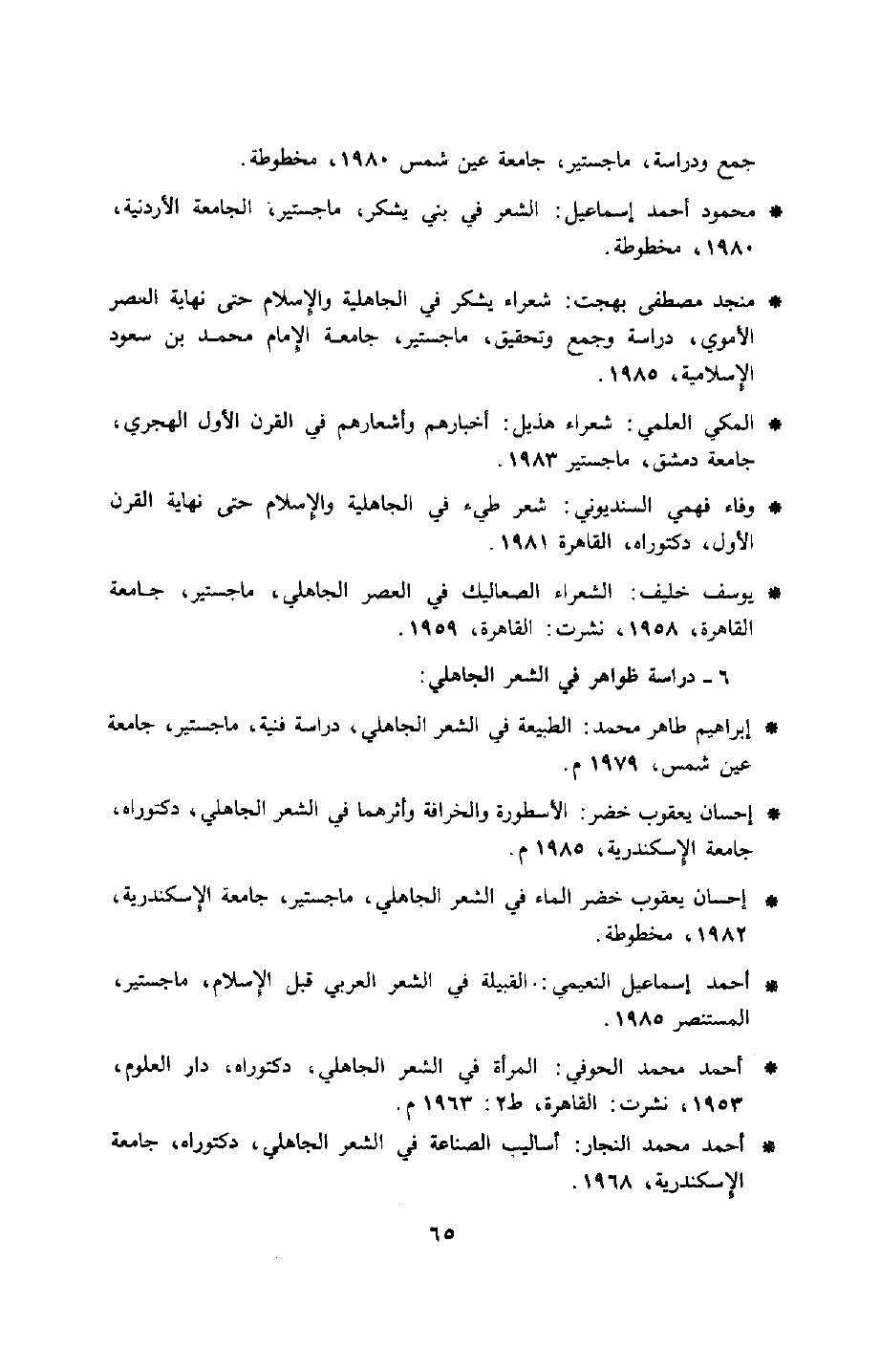 - أحمد محمد الحوفي: المرأة في الشعر الجاهلي، دكتوراه، دار العلوم، 1953، نشرت: القاهرة، ط2: 1963م.