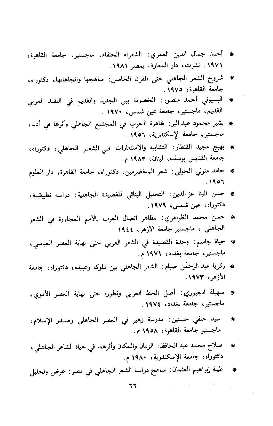 - حسن البنا عز الدين: التحليل البنائي للقصيدة الجاهلية: دراسة تطبيقية، دكتوراه، عين شمس، 1979.