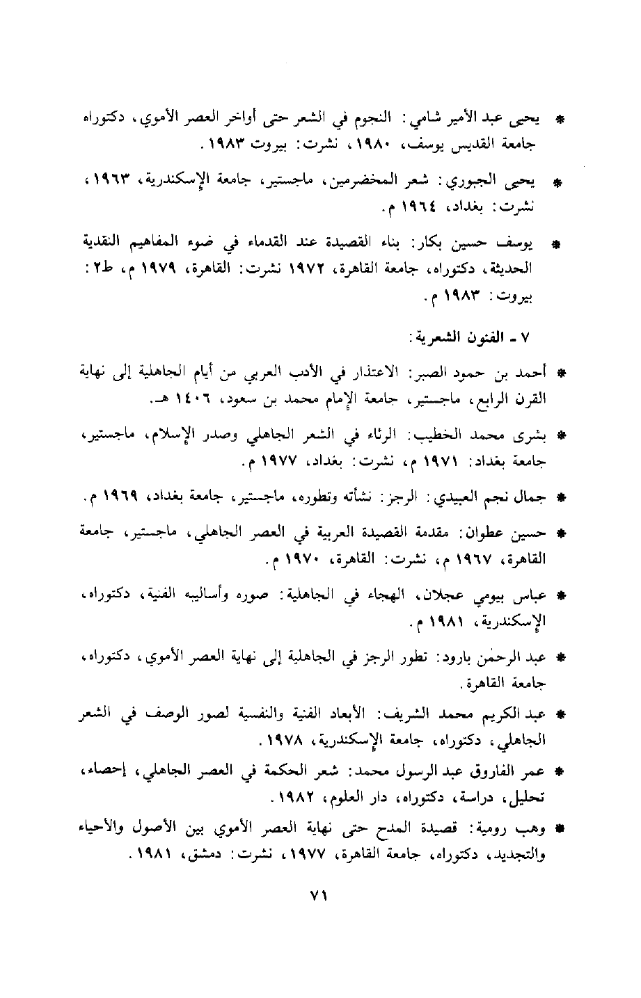 - جمال نجم العبدي: الرجز: نشأته وتطوره، ماجستير، جامعة بغداد، 1969م.