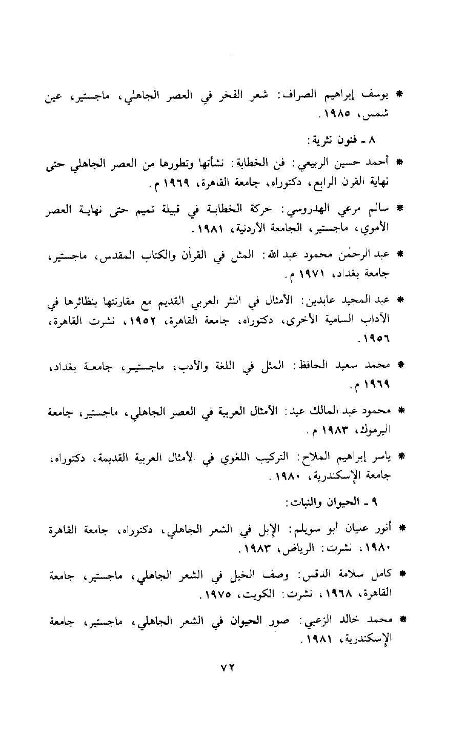 - محمد سعيد الحافظ: المثل في اللغة والأدب، ماجستير، جامعة بغداد، 1969م.