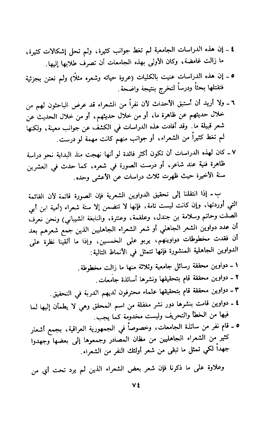 6- ولا أريد أن أستبق الأحداث؛ لأن نفرًا من الشعراء قد عرض الباحثون لهم من خلال حديثهم عن ظاهرة ما، أو من خلال حديثهم، أو من خلال الحديث عن شعر قبيلة ما. وقد أفادت هذه الدراسات في الكشف عن جوانب معينة، ولكنها لم تغط كثيرًا من الشعراء، أو الجوانب منهم كانت مهمة لو درست.