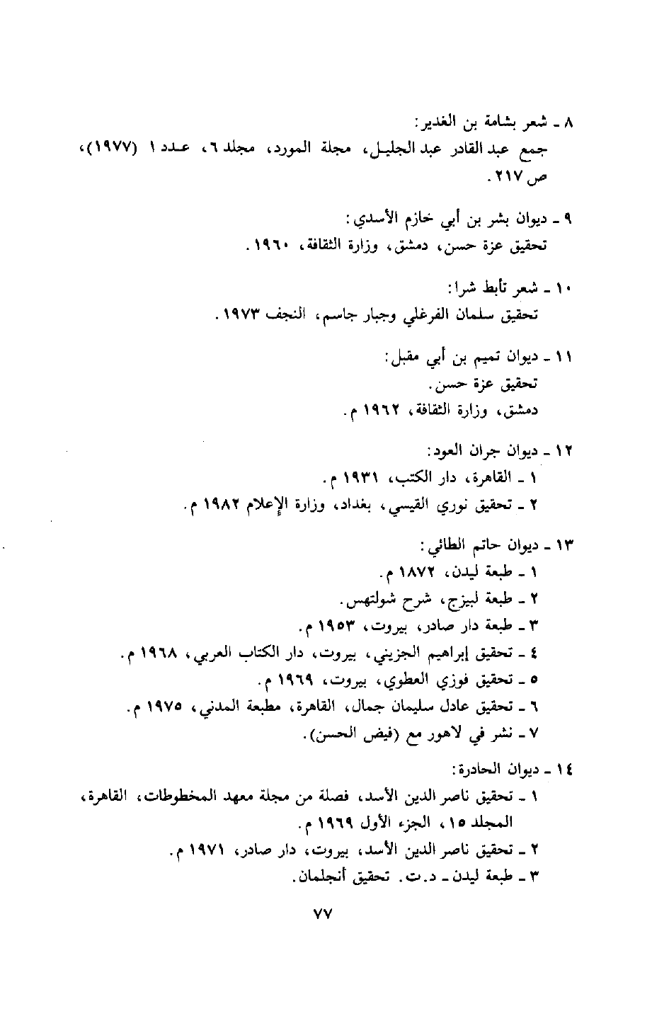 ب- تحقيق ناصر الدين الأسد، بيروت، دار صادر، 1971م.