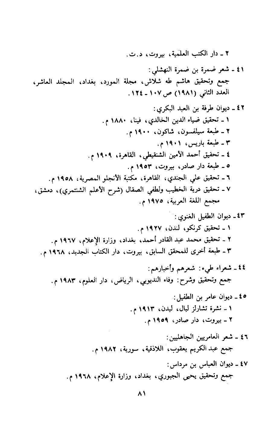 جمع وتحقيق: هاشم طه شلاش، مجلة المورد، بغداد، المجلد العاشر، العدد الثاني 1981, ص107-124.