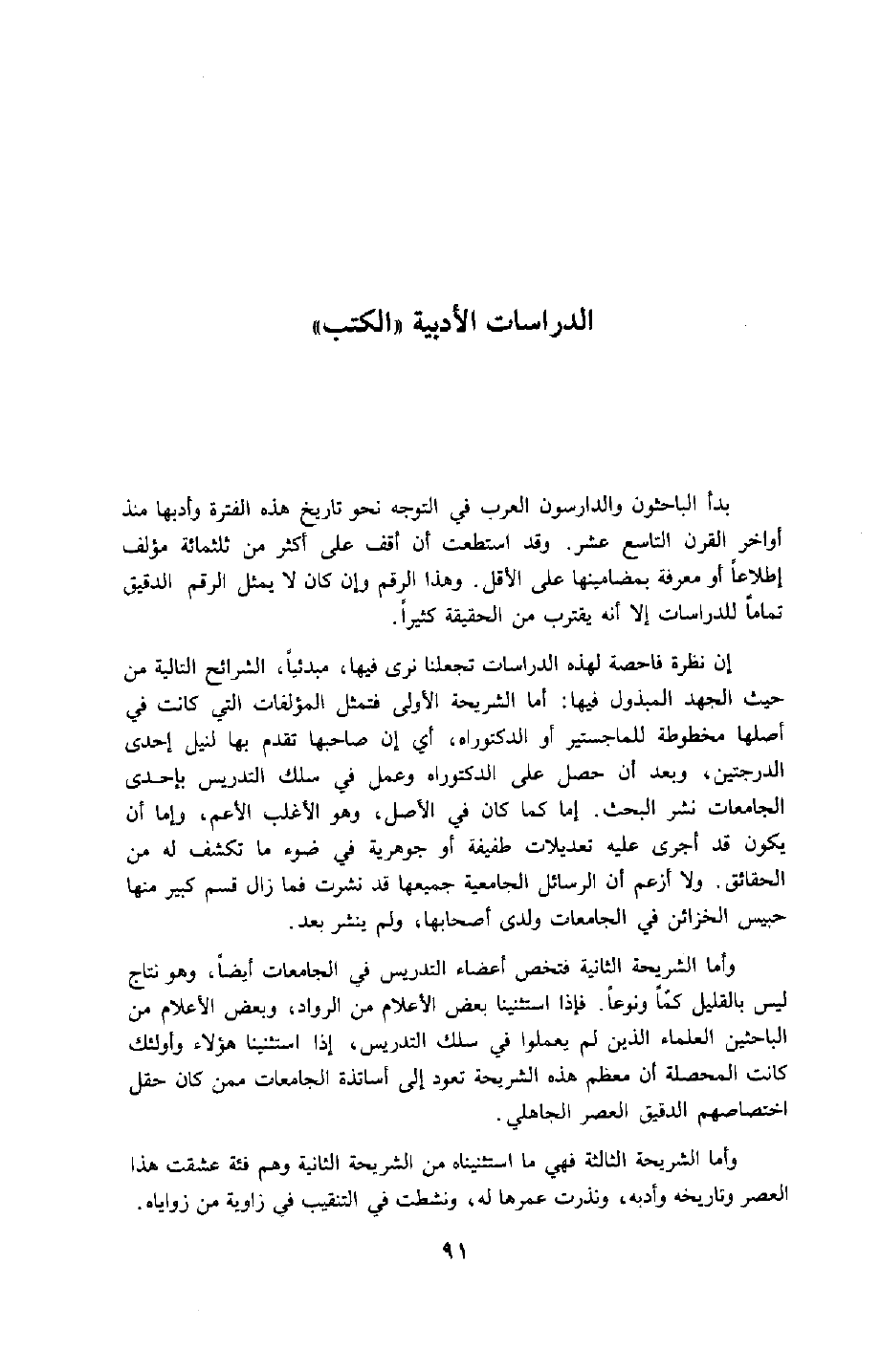 وأما الشريحة الثانية: فتخص أعضاء التدريس في الجامعات أيضًا، وهو نتاج ليس بالقليل كمًّا ونوعًا، فإذا استثنينا بعض الأعلام من الروّاد، وبعض الأعلام من الباحثين العلماء الذين لم يعملوا في سلك التدريس، إذا استثنينا هؤلاء وأولئك, كانت المحصلة أنّ معظم هذه الشريحة تعود إلى أساتذة الجامعات ممَّن كان حقل اختصاصهم الدقيق العصر الجاهلي.