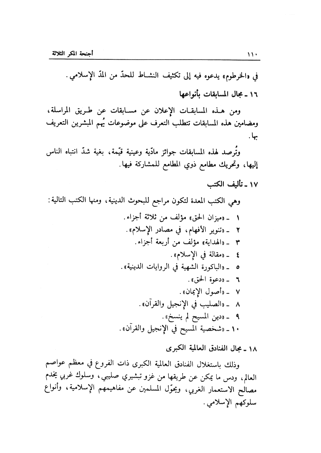 وذلك باستغلال الفنادق العالمية الكبرى ذات الفروع في معظم عواصم العالم، ودس ما يمكن عن طريقها من غزو تبشيري صليبي، وسلوك غربي يخدم مصالح الاستعمار الغربي، ويحوّل المسلمين عن مفاهيمهم الإسلامية، وأنواع سلوكهم الإسلامي.