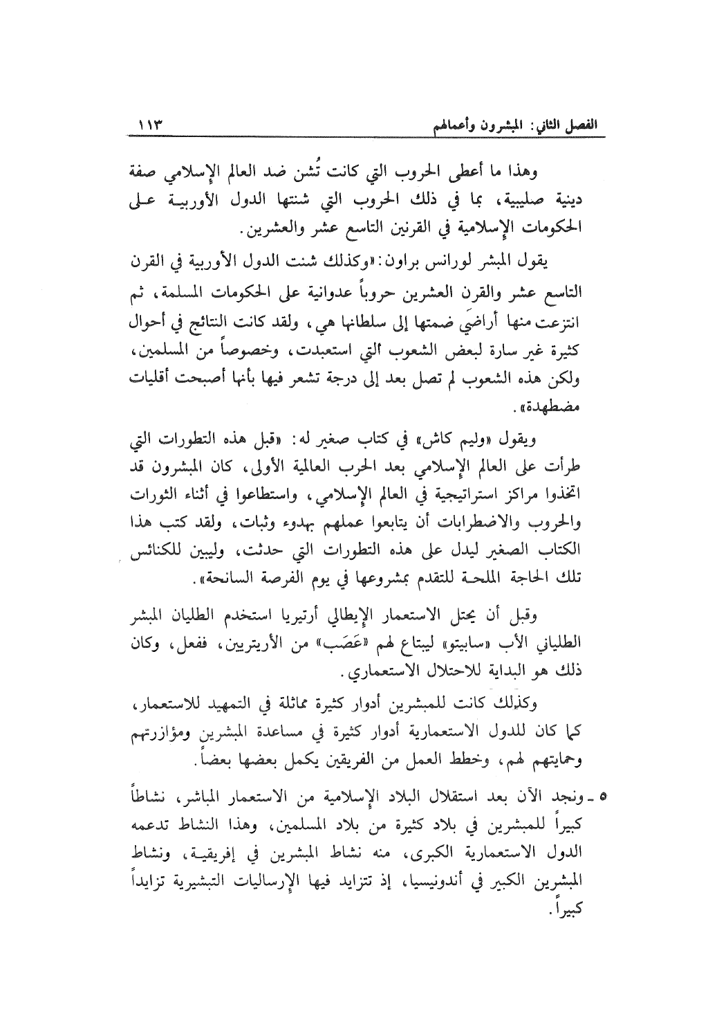 5- ونجد الآن بعد استقلال البلاد الإسلامية من الاستعمار المباشر، نشاطاً كبيراً للمبشرين في بلاد كثيرة من بلاد المسلمين، وهذا النشاط تدعمه الدول الاستعمارية الكبرى. منه نشاط المبشرين في إفريقية ونشاط المبشرين الكبير في أندونيسيا، إذ تتزايد فيها الإرساليات التبشيرية تزايداً كبيراً.
